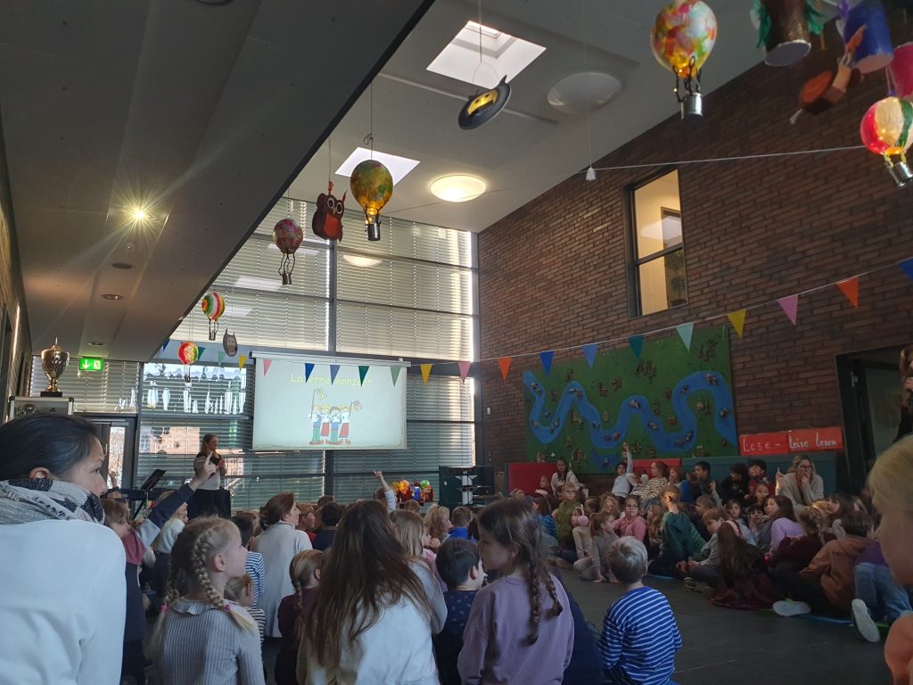Heute hat unser Foyer geblitzt, gefunkelt und vor allem geklungen! Beim Laternenkonzert hat die ganze Schulgemeinschaft gemeinsam gesungen, geklatscht und gestaunt.