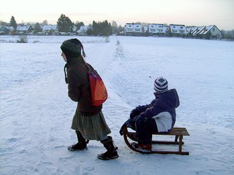 Obwohl viele befürchteten, der Schnee könnte bis zum 14.Januar wieder abgetaut sein, fand der Ausflug der Klasse 3b unter idealen Bedingungen statt. Es gab reichlich Schnee und sogar zwischendurch Sonnenschein. Dick eingemummelt und mit großer Vorfeude wanderten die Kinder, die begleitenden Eltern und die Klassenlehrerin nach Weldergoven, wo ein ungetrübtes Schneevergügen stattfand. Fast alle Kinder hatten ihren eigenen Schlitten oder Bob dabei. Zurück in der Klasse wurden die Preise für die Gewinner im Einer-,Zweier- und Dreierbobfahren und im Schlittenziehen verteilt.