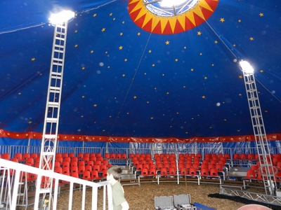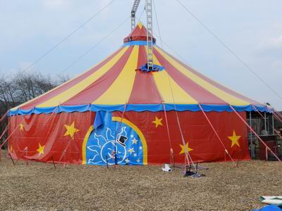 Mit vereinten Kräften wurde heute das nagelneue Zelt des Zirkus Soluna aufgebaut.