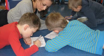 Heute wurde die ganze Schule zum Lernort. An vielen Stationen konnten die Kinder in den Fächern Deutsch, Mathematik, Sachunterricht, Kunst, Musik und Sport zum Thema Frühling arbeiten.