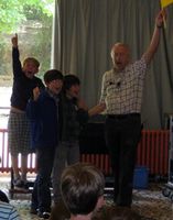 Neben der Verleihung der Zertifikate wurden auch Wettspiele zwischen den Schulen veranstaltet. Beim Spiel 1,2 oder 3 gewann unsere Schule den ersten Platz.![]() |