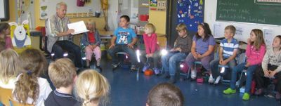Herr Steinhauer las uns aus seinem Bilderbuch “ Bepino “ vor.