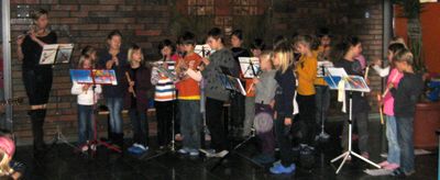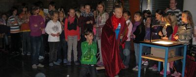 Stimmungsvoll ging es heute beim Laternensingen zu. Die klassischen Martinslieder wurden begleitet von der Flötengruppe von Frau Bekele und unserer neuen Kollegin Frau Aßmann auf der Gitarre. Der Chor stellte außerdem die Martinsgeschichte dar.