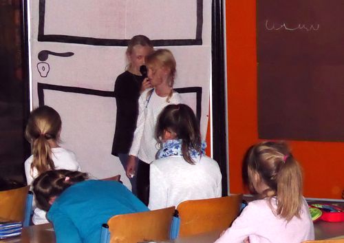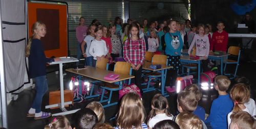 Heute hat der Chor sein Mini-Musical „Die Zauberkreide“ für die Schule und insbesondere für die Erstklässler aufgeführt. Es war eine tolle Vorstellung, die Frau Bolle mit den Kindern eingeübt hat.
