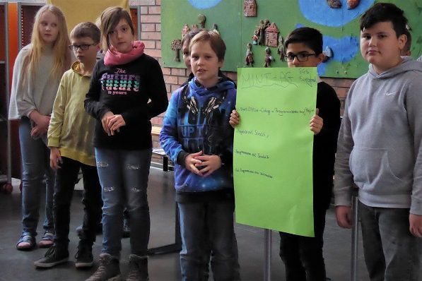 Heute fand das erste Treffen unserer Mint-AG mit den weiterführenden Schulen (Gesamtschule Hennef West und Gymnasium Hennef) statt. Unterstützt wird das Projekt durch das zdi-Netzwerk des Rhein-Sieg-Kreises, das auch unsere Roboter-AG sponsert. Alle Schul-AGs arbeiten an Ideen zum Programmieren oder zur Robotik und stellten sich heute ihre aktuellen Arbeitsergebnisse vor. Gekonnt berichteten unsere Kinder von ihren ersten Schritten im offline-Coding bis hin zu den Programmierungen mit Scratch.