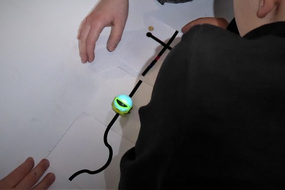 Abschließend fand noch ein Roboter-Rennen in gemischten Gruppen statt. Dabei mussten kleine Ozobots an einer Linie über eine Matte geführt werden.